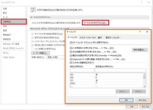 Excelの「オートコレクト」や「オートコンプリート」を無効化する手順