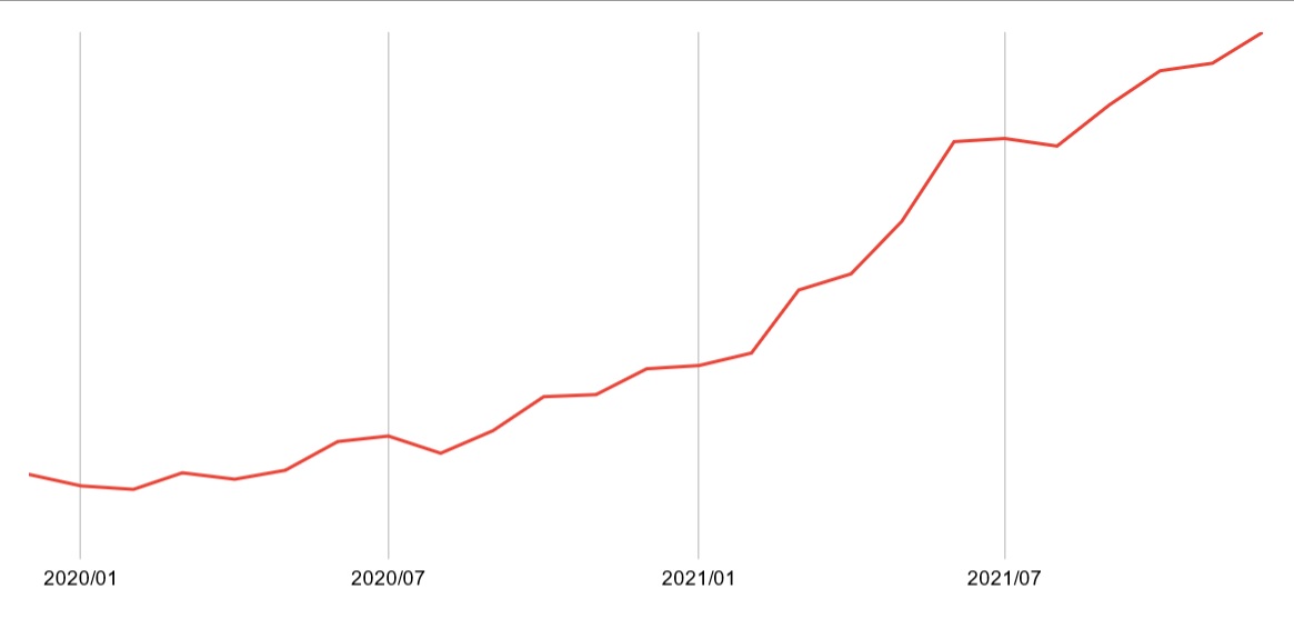 2021年に入ってから伸び率が大きくなり、特に冬から激増したのが確認できます。
