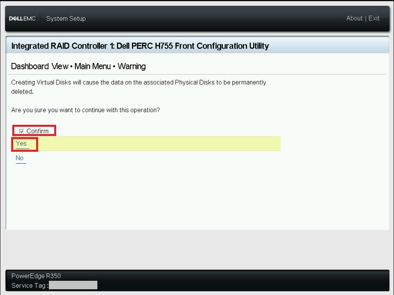 設定した内容でRAIDを作成して良ければ「Confirrm」にチェックを付けて、「Yes」をクリックします。