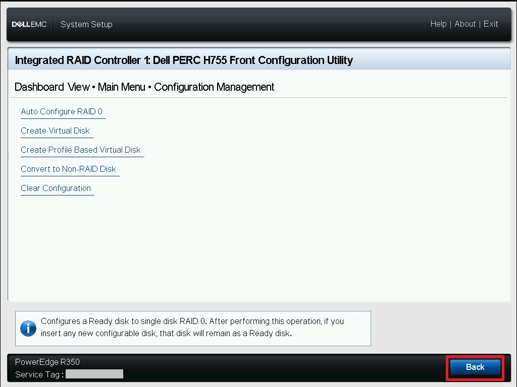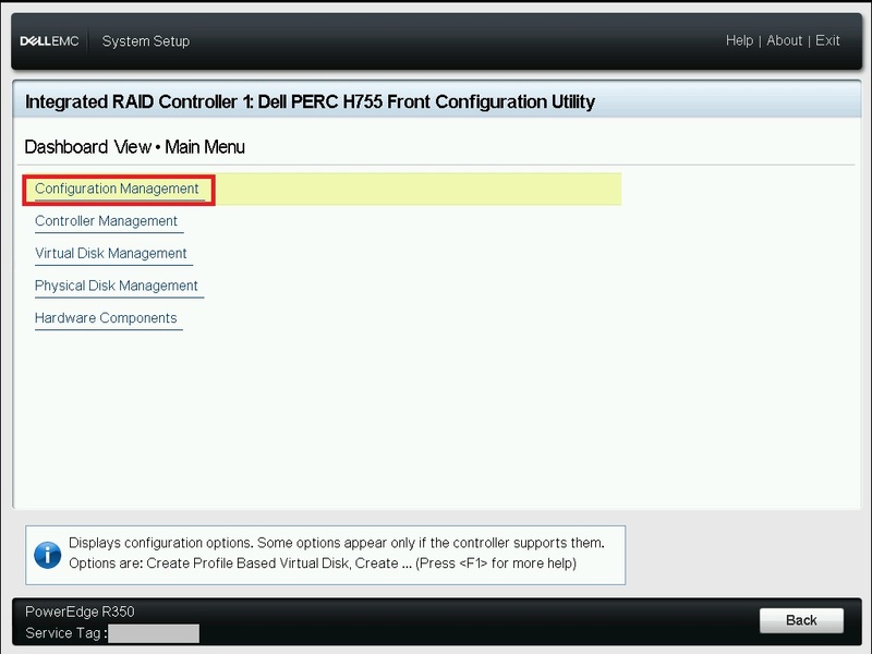 「Configuration Management」画面に戻りますが、この画面でもRAID作成前の項目のままですが、実際にはRAIDは作成できています。