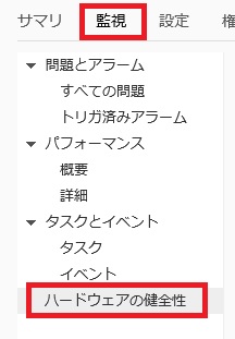 この場合は、インベントリ内の対象のホストを選択し、画面中央の「監視」→「ハードウェアの健全性」を選択してその情報を表示することで、エクスクラメーションマークが消えました。