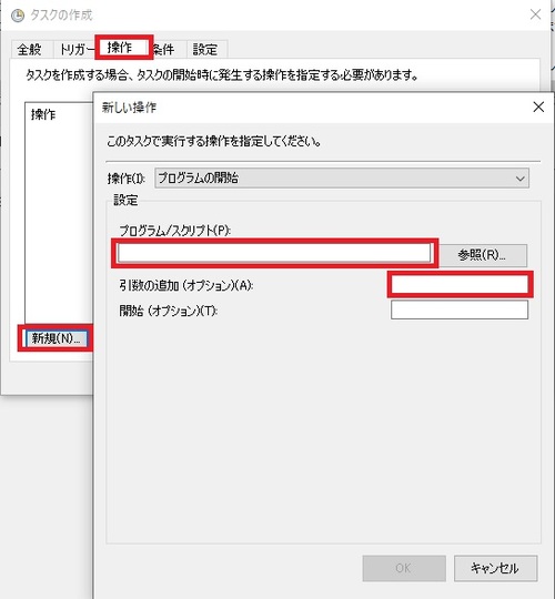 尚、「タスクスケジューラーの使い方」については、当ブログの別の記事でまとめており、引数の渡し方も説明しています。